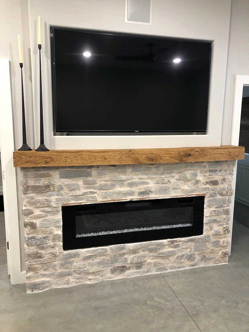 It didn't take too long to get his mantel to him. He sealed it and attached it over his fireplace.